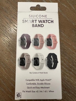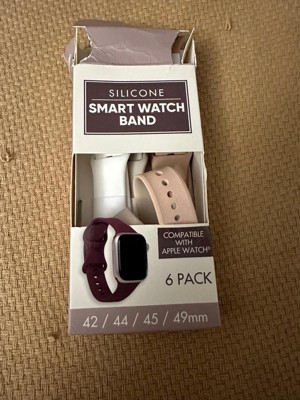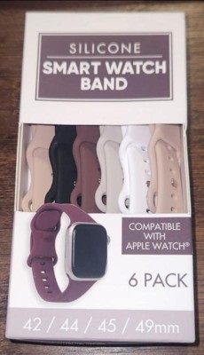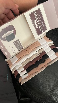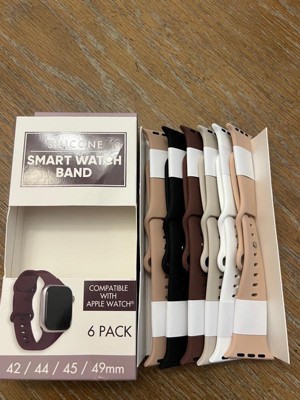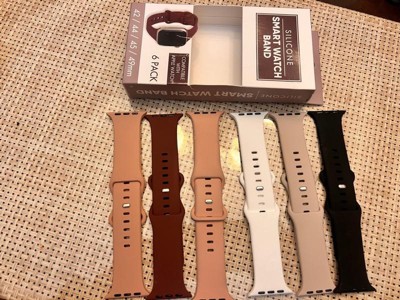[This review was collected as part of a promotion.] I was so pleasantly surprised with these watchbands. I never knew I needed a watchband wardrobe, but this silicone six pack of watch bands in assorted colors are fantastic. I received black white, rose or pink, khaki and deep brown. I enjoy switching out the bands with my Apple Watch matching up with my outfits and my eyeglass wardrobe. It is compatible with Apple Watch size 42/44/45/49 mm. The silicone feels very high-quality and very comparable to the Apple Watch wristbands. Love love love this idea.