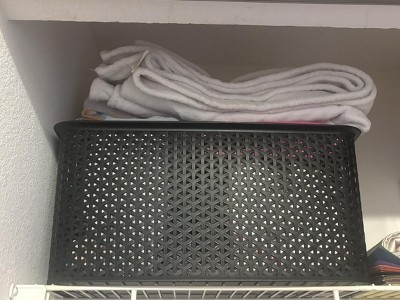 The space above my closet had been a mess for quite some time and not being utilized as it could be. I have the Large baskets just like this above my refrigerator keeping things contained and decided to give the XL baskets a try. They are so sturdy! They are deep and provide a great organization and esthetic. Highly recommend fo rany closet space and/or shelf.