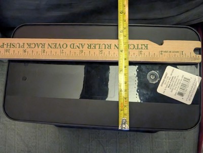 A beautiful blend of style and organization, this Y-Weave Narrow Easy Access Decorative Storage Basket from Brightroom™ adds modern style to your home. This black storage basket features a Y-weave design for textured appeal and easy integration into a wide variety of decor styles. Made with plastic in a rectangle shape, this narrow basket has a front cutout and open top for easy access to the contents. It comes with side handles for convenient holding and moving from one place to another. You can place it on a shelf or desktop to keep items organized.