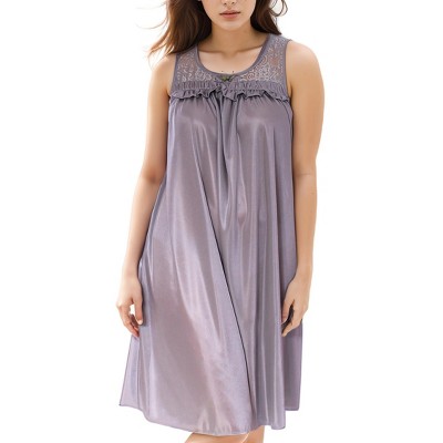 YafeMarte Women’s Silky Satin Feeling Sleeveless Nightgown with Floral Lace and Embroidered Design, Charcoal 2XL
