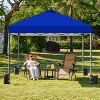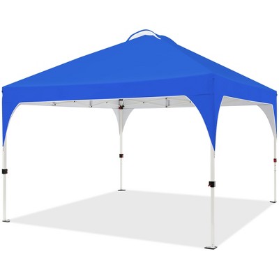 This 10ft × 10ft pop-up canopy tent is designed for ultimate outdoor comfort. Constructed with durable polyester fabric featuring a UPF 50+ UV protective coating and a sturdy powder-coated steel frame, it offers reliable protection from the elements. The one-push-to-lock system makes setup quick and easy, while the adjustable height from 6.2′ to 9.2′ ensures versatility for various needs. The canopy accommodates up to ten people for gatherings or relaxation. Equipped with two-wheeled legs for easy mobility, it can be moved effortlessly even when fully set up. When not in use, the tent folds compactly into a carry bag, and the wheels are exposed for dragging. Strong stability is ensured with guy lines, sandbags, and ground anchors. Ideal for outdoor adventures, parties, or poolside use.