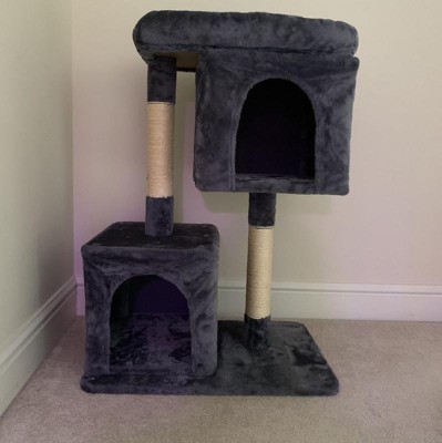 The tower is sturdy and well made. It’s the perfect size for my cats and isn’t wobbly when they play around with it because they’re really active. The material is also soft and easy to clean off the fur after it collects.