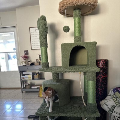 【Cute Cactus Design】Our cat tree boasts a charming and playful cactus-shaped design in captivating green and brown hues that will turn heads. Its elegant color captures your feline's gaze, making it an ideal statement piece that blends perfectly with your existing house plants.