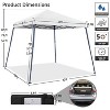 A: This 10 × 10ft slanted legs canopy offers a 60 square feet cool shade that can cover 4-6 people, and the 130 cm L x 19 cm W x 19 cm H/ 51.2″ L x 7.5″ W x 7.5″ H portable carry bags allow it to fit into most vehicle trunks, an ideal choice for a family trip. You can use this canopy for a BBQ, camping, or sunbathing on the beach.