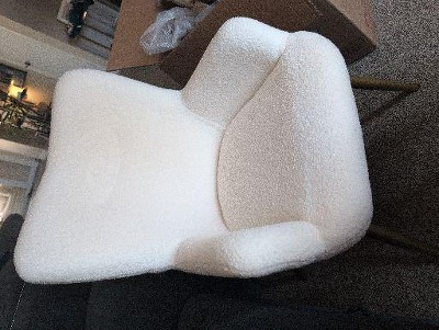 Fluffy Boucle Upholstery: Fluffy polyester upholstery is soft to the touch and will keep you warm even in cold weather, making you feel snug once you sink in. The ivory-tone boucle covering instantly softens your space and introduces an inviting and elegant atmosphere