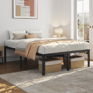 - Constructed of a solid and durable steel framework, this bed frame features thick and sturdy metal legs that provide you optimum stability for any type of latex, memory foam or spring mattress without a clumpy box spring. Thus you can have your bed set up in no time and enjoy amazing sleep and even snoring! The durability of the metal bed frame also prevents mattress sagging, which benefits the long-lasting use of your mattress. In addition, the high profile of the platform bed frame creates valuable under-bed space for storing your quilts, pillows, out-of-season clothing or other items, versatile for use.