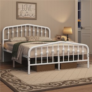 • 【Design-forward Metal Bed】The mix of straight lines and gentle curves softens the sleek metal, making this stylish bed frame blend with traditional, farmhouse and other bedroom decors. The stunning spindle accents on the head and foot end add a vintage charm that is sure to impress your guests.
