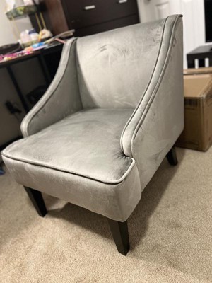 The chair is very nice and comfortable! Quite easy to set up, it is a stylish addition to any living room or bedroom. Its soft velvet fabric and elegant gray color and sophistication, gave me great relaxation.