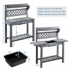 Practical Storage Solutions: This potting bench integrates storage into a gardening table. The elevated rack offers a space for displaying or temporary storage. The grid wall is great for hanging tools, and the shelf provides ample space for organizing your gardening tools and materials