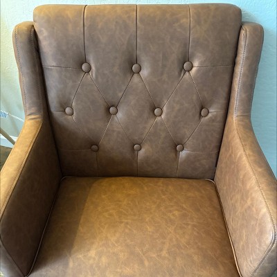 【Selected Materials】Founded on four wood grain metal legs, this handsome accent chair embraces a CARB-compliant plywood frame, durable PU leather upholstery, resilient foam fill and strong springs, offering a reliable, plush sitting experience. It can support up to 300 lb.