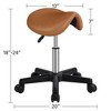 This professional saddle stool is perfect for salons, tattoo shops, barbers, and beauticians. It is comfortable to use with a PU leather seat. The design of a hydraulic gas lift can let you adjust the height easily. 360° swivel wheel casters are for easy movement. Just a simple installation is required.