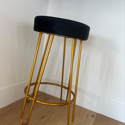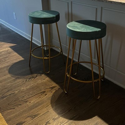 Soft velvet upholstery and gold metal legs create a modern glam accent, suitable for contemporary decor. These round backless counter chairs brighten kitchens, dining rooms, home bars, restaurants, and cafes