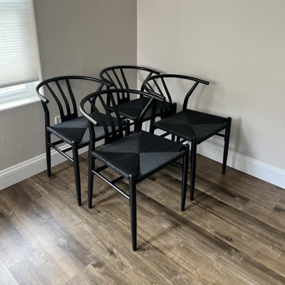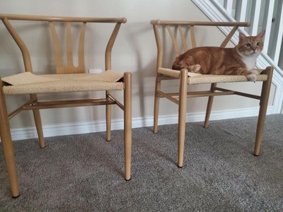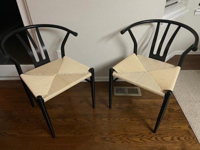 I'm thrilled with this set of weave arm chairs! The installation was easy, and they've truly transformed my dining area. With hand-woven rope seats, open cut-out backrests, and sleek tapered legs, they exude a chic mid-century modern vibe, instantly elevating the room's look. These chairs are not just stylish; they're also incredibly sturdy, thanks to the metal frame and natural paper rope, ensuring long-lasting durability and comfort. The curved backrest provides excellent upper body support for extended sittings, perfect for long dinner conversations. These versatile chairs work beautifully in the dining room, kitchen, or living room, enhancing the aesthetics and adding a touch of coziness and style to my home. Highly recommended!