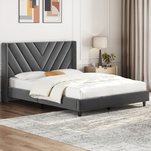 Yaheetech Upholstered Platform Bed Frame with Wooden Slat Support - 1 of 4