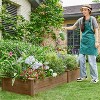 A: The garden bed is made from solid wood, specifically selected for durability and quality.