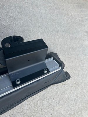 [This review was collected as part of a promotion.] I recently had the opportunity to try the SlimShady awning thanks to Yakima and Influenster in exchange for my honest review. As someone who goes on a fair amount of outdoor adventures, I was excited to try this product out. I am very familiar with tents and shades but never used a vehicle awning before. Setup was a bit challenging even with 2 of us, and in retrospect we should have done a test run before hitting the road. The awning came with 2 manuals which listed different parts. This proved to be confusing when installing the hinges onto the awning bar, as the instructions weee conflicting. In addition to setting it up before you head out, I would also recommend measuring your luggage rack bars to determine the distance, otherwise you’ll be going back and forth removing the awning latches to readjust the placement! Once we got this part of the setup done, it was relatively easy to figure out the rest. You unzip the bag, pull out the top bars and insert them into the holes at the front of the awning. We encountered another issue here. The holes that the poles fit into don’t seem to have any locking mechanism, and as it was a windy day, they kept popping out of the holes. Once we got the bottom poles on the ground and the awning fully velcroed the awning was much more stable. The final issue encountered was with the pole feet. Unfortunately the little black plastic feet that sit on the bottoms of the poles were missing, leaving us with the pointed bare pole ends scraping on the ground. I suppose if you are pitching this on grass or dirt it’s not a huge issue. But on concrete the poles were just scraping the asphalt. A call or email to Yakima would probably result in the replacement parts, but as we didn’t check for all parts before leaving, we were left with a vulnerability on the road. Other than the setup issues I like the awning and the idea of having a built in shade on my vehicle. The awning itself seems sturdy, as is the bag it stows into. The brackets and rail seem durable although the poles are a little floppy and even after one use, we noticed scratches and marks on them. If you can overcome the setup woes by taking time to pre install and deploy it before using this on the road, you’ll probably enjoy the convenience of shade this awning provides.