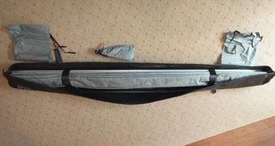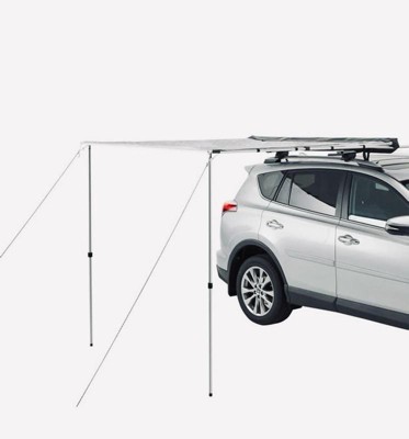 [This review was collected as part of a promotion.] A tough duty material that is durable and withstands the weather. With attaching clips that are way easy to use and attached to roof mount easily. Installation is a breeze with easy pull out material and adjustable poles for easy roof setup. An overall great addition to the camping and beach going scene. A decent choice for canopy of sorts.