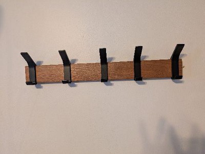 [This review was collected as part of a promotion.] The neutral wooden color matches the aesthetic of our home. It was easy to install and holds our coats and bags perfectly.