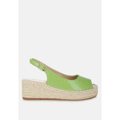 Meet your go-to wedge sandals with an adjustable pin buckle and chic peep toe. Featuring faux leather with textured croco details and a comfortable 2.5-inch wedge heel, they're perfect for summer getaways and brunches! Type: Wedges Upper Material: Croco Faux Leather Outer Sole: TP Rubber Open Peep Toe Woven Wedge Heel Pin Buckle Slingback Closure Plush Cushion Insole Heel Height: 2.5 inches SH5439