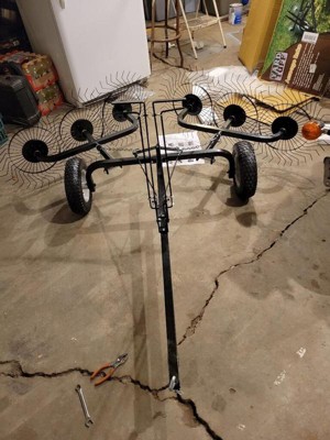 [This review was collected as part of a promotion.] This tow behind average rake is easy to connect and does a good job to turn your messy leaves into neat rows making it easier to pick up. I has 6 20 inch tine reels that turn and push into rows. There are several adjustments that can be made to help performance for your yard. It really helped with my 5 acres of leaves.