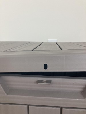 This deck box is sturdy, weatherproof, and just the right size for storing pool toys and patio cushions. The material feels durable and the UV resistance is a big plus. I love the side handles—they make it easy to move around. The secure lock hole adds peace of mind. Highly recommend for anyone needing sleek and functional outdoor storage!