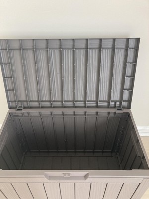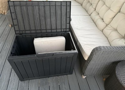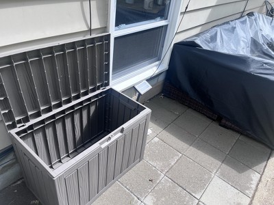 We’ve been using this 45-gallon outdoor storage box for a few weeks now, and it’s been a fantastic addition to our backyard. The size is just right for storing cushions, small gardening tools, and a few pool toys. It keeps everything dry and protected, even after a few heavy rainstorms. The brown color blends nicely with our patio furniture, and the material feels sturdy and durable. Super easy to assemble too! Great value for the price—I’m really happy with this purchase.