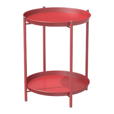 YARDGRACE Grand Patio Outdoor Side Table 2-Tier End Table Round Accent Table Peacock Red