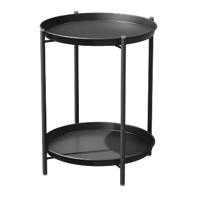 2-TIER STORAGE: 2 tiers coffee table provide a larger capacity home storage, the round tray made of steel material, the surface is smooth with fine coating. You can put books, coffees, laptop, photographs, small pot plants on it.