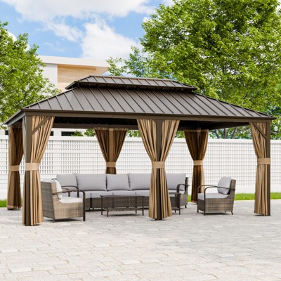 YARDSIGHT 12'x18' Hardtop Gazebo, Aluminum Frame Pavilion with Curtains & Netting, Outdoor Double Roof Canopy, Ideal for Garden, Lawn, Patio