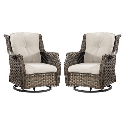 YARDSIGHT 2PC Outdoor Swivel Patio Chair with High Back-All-Weather PE Wicker Rattan Chair with Waterproof Cushion for Porch, Deck, Backyard&Balcony