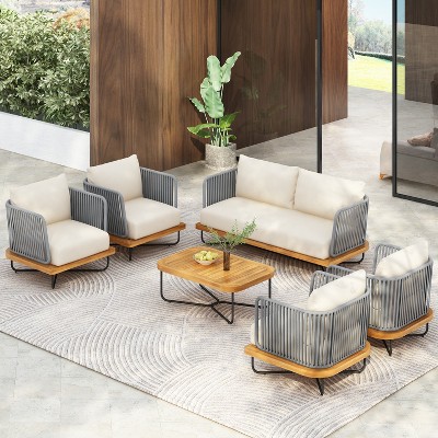 Elevate your outdoor living space with this stylish 4 - piece patio furniture set. Crafted for both comfort and durability, it's perfect for creating a cozy conversation area in your backyard, by the poolside, or on your patio. The set includes a spacious sofa, two swivel chairs, and a chic coffee table, all designed to blend seamlessly with any outdoor decor while providing a relaxing spot to unwind with family and friends.