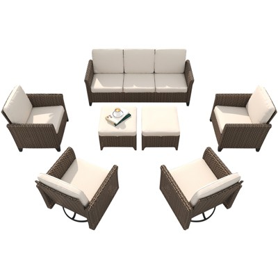 YARDSIGHT 6-Piece Outdoor Swivel Conversation Set with 3-Seat Sofa, 2 Swivel Chairs, 2 Ottomans, and Side Table
