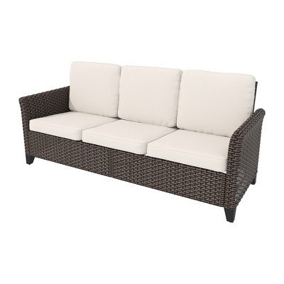 Versatile Style: With its elegant wicker weave and plush, comfortable cushions, this outdoor couch effortlessly enhances any outdoor decor. Its neutral and timeless design makes it a perfect fit for small balconies, decks, and backyard settings, blending seamlessly with modern, traditional, or tropical themes. Upgrade your outdoor space with a piece that offers both style and functionality.