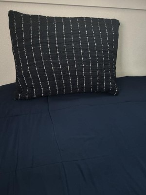 Navy blue crinkle yarn dyed sham