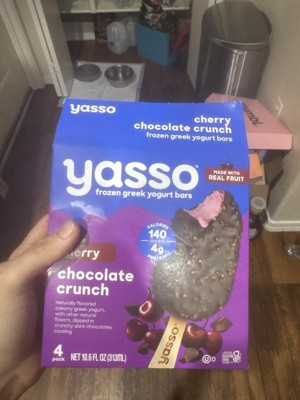 - Yasso Cherry Chocolate Crunch bars are made with real fruit. 140 calories and 4g of protein per bar