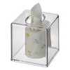 Display your tissues in style with this elegant clear acrylic tissue cover by YBM Home This attractive tissue holder is sure to compliment any style of home decor while serving aesthetically in providing tissue paper whenever you need one. The unique acrylic construction is both sturdy and transparent to see-through, allowing for an intriguing viewing of the tissues or decorative tissue box inside. It is easy to refill by lifting up the lid and easy to clean with a damp towel to get rid of dust. Add a cohesive look on a vanity, dresser, bed nightstand or countertop with this contemporary tissue box cover.