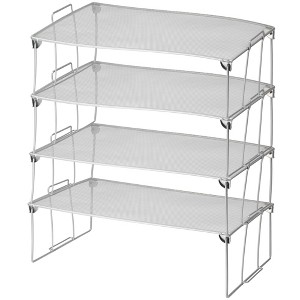 - STACKABLE SHELVING UNIT: Sold per one shelf . If multiples of this shelf is purchased then shelf can be stacked one on top of the other with it’s interlocking legs. From the original makers of Mesh, they are the perfect storage rack for maximizing space in small apartments, RV’s and kitchens. You can buy multiples of them and stack 3 or 4 of these metal shelving units together to triple or quadruple your storage space.