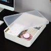Add harmony and organization in your living space with these practical storage bins Compartmentalize Everything Cheering up your space is our ultimate goal! Storage bins can turn a messy room into an organized regime. From small household items to office supplies, our containers can help you keep everything nice and contained. Made of the highest quality plastic material, these BPA-free storage bins withstand daily wear n’ tear and provide practical storage solutions to keep drawers, closets, cabinets, and other spaces around your house clutter-free. Stack As You Fill Them Up If you buy more than one storage bin, you can easily stack these baskets in an upright practice. The tight-fitting lid secures the content inside. They are useful for holding cosmetics, jewelry, nail supplies, beauty supplies, personal care products, and much more. When not in use, just stack them for easy storage. Two Available Sizes We offer the following sizes - Small - Measures: Upper Length 10.25 in. x 7.25 in. Upper Width x 3.25 in. Height. Lower Length 9.75 in. Lower Width 6.75 in. - Medium - Measures: Upper Length 14.25 in. x 10.25 in. Upper Width x 3 in. Height. Lower Length 13.75 in. Lower Width 9.75 in