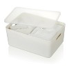 - SECURED LID - The lid allows you to keep items safely stored like craft projects, office supplies, cleaning products, and toys. The bins are stackable when not in use
