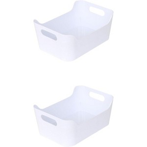 YBM Home White Open Plastic Storage Bins with Handle, Pack of 2