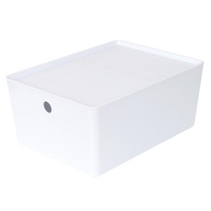 YBM Home White Plastic Storage Bin with Lid