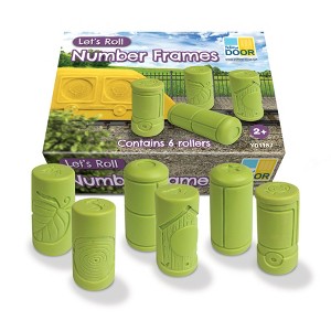Yellow Door Let's Roll � Number Frames | Children will love using these ingenious rollers to create tactile images in play dough, clay or sand, providing lots of opportunities to explore and engage with number in playful ways. Ideal to create 1�5 or 1�10 frames for simple counting, or to make attractive scenes that can roll on and on! How many ladybugs are climbing the beanstalk? Have any flown away? Is the train full? How many seats are left? As they roll and stamp, children will be encouraged to ask questions and extend their math vocabulary. The set includes 6 versatile designs: two traditional number grids; two vertical frames: a beanstalk and stepping stones; and two horizontal frames: bird boxes and train carriages. Made from a durable stone mix which is easy to clean, each set includes six rollers measuring 2-3/4" high. Age 2+.