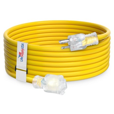 Yellow Jacket 25 Foot 3 Outlet 3-Prong Extension Power Cord with Lighted Plugs for Industrial, Commercial, Residential, and Construction Use
