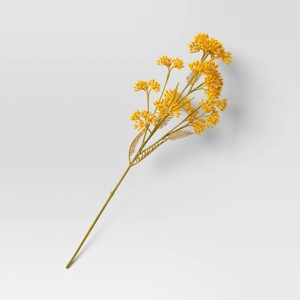 Add a natural-looking accent to your home decor with this Artificial Seed Stem from Room Essentials™. This 21-inch stem features a faux foliage of yellow seeds and leaves on multiple branches for a gorgeous look that blends well with a variety of decor styles. Perfect for use as a vase filler or table centerpiece, the artificial yellow stem can be used for year-round decoration.