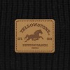Embrace the rugged charm of the Yellowstone series with this black tall cuff beanie. Featuring a PU patch with a detailed horse and the text "Yellowstone Est. 1886, Dutton Ranch, Montana," this beanie is crafted from cozy acrylic yarn. Its classic design keeps you warm while showcasing your favorite show. For the best results, hand wash it in cold water and lay it flat to dry to maintain its shape and quality.