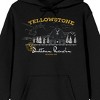 Celebrate your favorite TV series with this Yellowstone sweatshirt. The hoodie features a sketch of Dutton Ranch Forest under yellow letters that spell out the show's title. The sweatshirt comes in black with an adjustable hood and a large pouch pocket. Yellowstone fans will love this comfy and cozy hoodie.