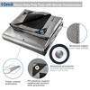 Features:- Strong & Durable Shelter - 10 x 15 ft silver and black poly tarp forms a strong and durable shelter from sunlight, rain and dust, cooler underneath in the summer; Long lifetime up to 3 years, it features good ability of anti-aging for long-time use- Waterproof and UV Resistant Double-side Used Cover - Made of 100% brand-new PE material and triple coated lamination for double-sided use, silver layer for resisting sunlight in sunny day, black layer for maintaining heat in cold day, both side for waterproofing, UV resistance & not easy to get black stains in wet weather- Heavy Duty Sturdy Poly Tarp - Weights 5.07lbs, 10mil heavy-duty thickness and aluminum grommets in 3 1/4 ft (1m) interval for better tear-resistance; PP plastics capped reinforced corners with grommets for sturdy construction; All seamless edges avoid water leakage