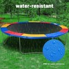 Features:- Easy Installation & Storage - Features tool-free installation within minutes, simply lay it out flat on the trampoline and tie the bottom straps to the V-Rings and frame for simple DIY assembly; Foldable design for easy space-saving storage when not in use- Durable - Made of 110g/m? PE material for UV resistance and 310g/m? PVC for water resistance and easy cleaning, ensuring great durability and effortless maintenance so you do not need to worry about leaving it outdoors- Safe & Comfortable - Features one-piece design to fully cover the exposed trampoline springs and the entire frame without leaving any gaps, avoiding direct contact with the springs during the bouncing process, protecting children from potential injury; With 9/16" thick EPE sponge lining to prevent deformation for prolonged use, while providing comfortable jumping experience- How to Choose - Please measure your trampoline size (outer frame-to-frame diameter) jumping mat diameter and spring length and confirm the selected option is correct before purchasing; It is recommended to replace it regularly for better safety and performanceSpecifications:- Overall Dimension(Dia.xH): 144" x 9/16" (365.76 x 1.4 cm)- Fits: 12 ft Round Trampoline (Suitable for Standard-Size Trampoline)- EPE Foam Thickness: 9/16" (1.4 cm)- Side Skirt Width: 3 15/16" (10 cm)- Strap Quantity: 24- Net Weight: 5.95 Lbs (2.7 kg)Package Contents:- 1x Trampoline Safety Pad- 1x ManualNotice: - Please measure the dimensions of your trampoline frame and read our description carefully for the best fit prior to your purchasing.- Please note that the trampoline pad does not have holes for inserting poles.