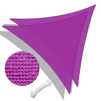 Features:- Decorative & Effective Shading - 2 Packs of 28 ft Equilateral Triangle Sun Shade Sail, gorgeous color to attract attention, a beautiful decoration for backyard, balcony, terrace, patio, porch, pergola, deck and so on; Also, a perfect sun shade to offer a shelter near the pool for swimmers to rest- HDPE Reduces Heat Transfer - Made of 100% brand new 185GSM HDPE material to efficiently reduce the temperature under sail about 50°F (10°C), excellent breathability to allow breeze to pass through, offers a cool and airy shelter on hot days- 97% UV Block Protection - Effectively blocks 97% of harmful UV ray to protect your delicate skin from blazing sun, creating a comfortable area in summer time- Easy Assembly & Maintenance - Hanging ropes included for convenient installation by simply connecting stainless steel D-shape rings and the mounting points; Foldable design for space-saving storage and washable sail for easy cleaning- Durable in Use - Triple stitched seam reinforces the edge to prevent fraying and ripping; Curved triangle shape helps the sail to keep tight; Heavy-duty nylon ropes included; Anti-ager composition added for long time service; 5-year warranty for quality issueSpecifications:- Sun Shade Sail Side Length: 28ft (853.5 cm) - D-shape Ring Dimension(LxWxH): 1 7/8" x 1 3/4" x 1/4" (4.8 x 4.5 x 0.6 cm)- Rope Length: 13 1/12ft (400 cm)- Fabric Weight: 185 GSM- Net Weight: 12.1 Lbs (5.5 kg)Package Contents:- 2x Sun Shade Sails- 6x Ropes- 2x ManualsNotice: - Please allow approx. 6" measuring deviation due to manual measurement and flexibility of fabric. Each side may be 6" longer than the related product size showed on the listing.The sail colors represented on the website may differ slightly from the actual product, and different monitors may cause colors to vary slightly. Viewer's discretion is advised.