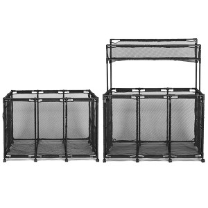 - Durable Construction & Easy Installation - Sturdy metal tubes with powder coating for resistance against rust, wear-and-tear and scratches, ensuring a long lifespan; comes with mounting accessories for easy DIY installationSpecifications:- 2-Tier Basket:- Overall Dimension(LxWxH): 49 7/16" x 30 1/2" x 61"- Side Pocket Size: 13 3/4" x 11 13/16"- Net Weight: 16.4 Lbs - 1-Tier Basket:- Overall Dimension(LxWxH): 48 13/16" x 30 5/16" x 33 1/4"- Interior Dimension: 46 7/8" x 28 3/8" x 30 11/16"- Side Pocket Dimension: 13 3/4" x 11 13/16"- Net Weight: 11.5 LbsPackage Contents:- 2-Tier Basket:- 50x Tubes- 4x Corner Connectors- 6x T-Shape Connectors- 6x 3-way Connectors- 4x 4-way Connectors- 10x Wheels- 2x Mesh Cloths- 1x Wrench- 1-Tier Basket:- 8x Corner Tube Connectors (include 4 threaded connectors)- 8x T-Shape Tube Connectors (include 2 threaded connectors)